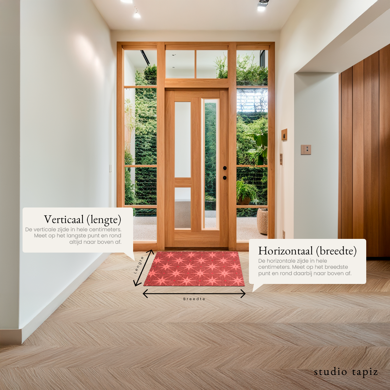 Le tapis d'entrée de vos rêves, signé Studio Tapiz, est à portée de main. Avec nos tapis d'entrée design, non seulement vous créez un accueil chaleureux, mais vous protégez également votre sol de la saleté et de l'humidité. Suivez notre guide étape par étape et commandez le tapis d'entrée idéal !